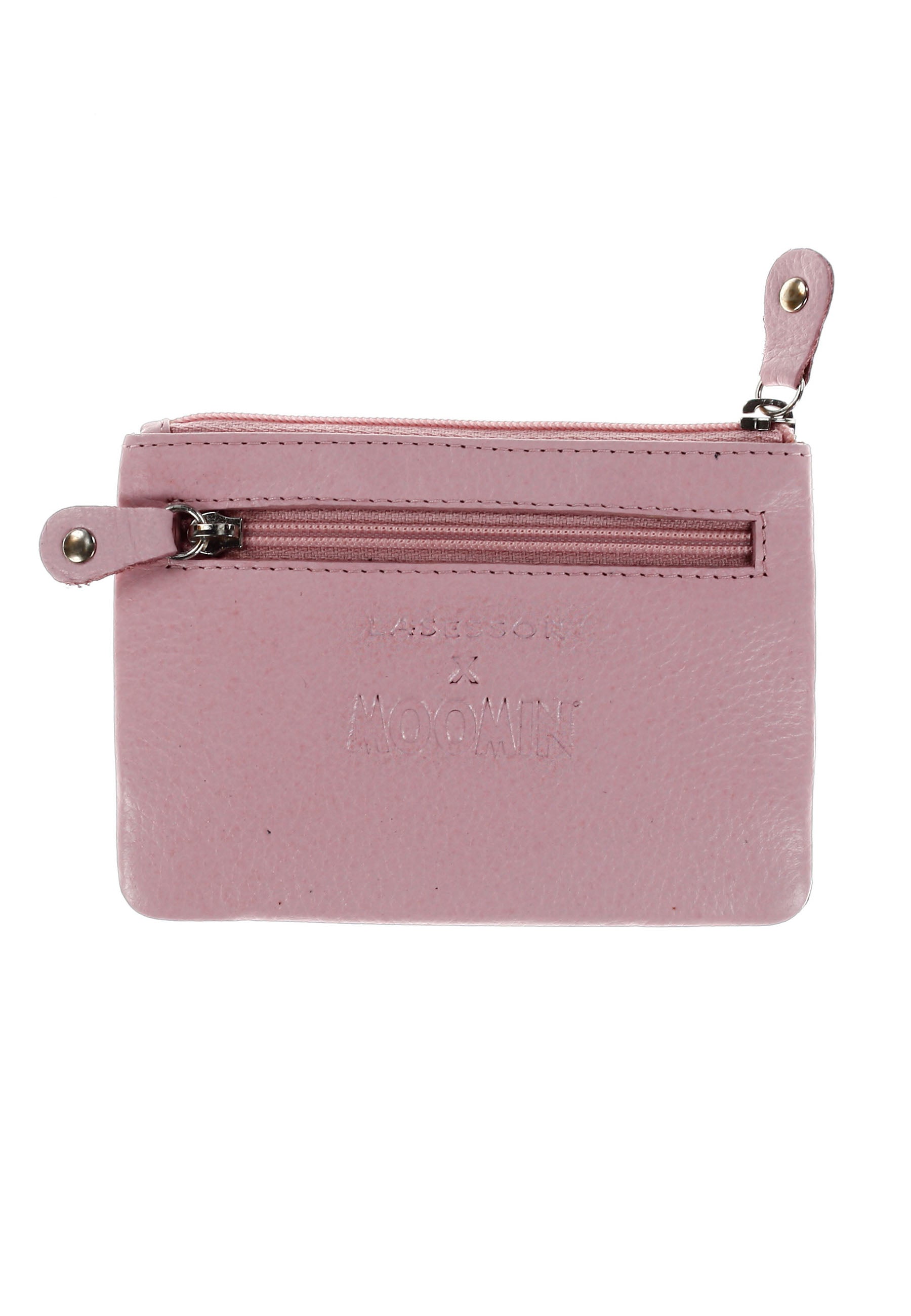 Insidan är vackert fodrad och säkerställer funktionell förvaring av dina värdesaker. Den kompakta storleken gör den idealisk för alla tillfällen där stil och praktiska egenskaper går hand i hand. Unna dig Muminmyntväska i läder och låt varje dag bli en fest för både ögon och händer.